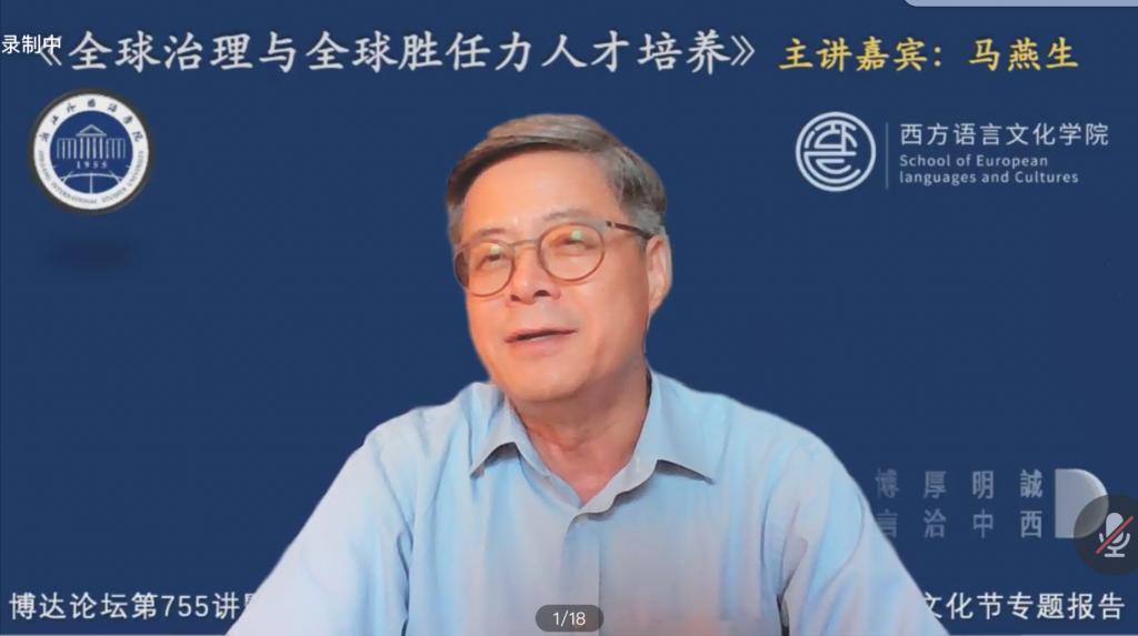 6月8日下午,“寻语大讲堂”第10讲暨校博达论坛第755讲、校第四届国际文化节专题讲座《全球治理与全球胜任力人才培养》在线上举行。