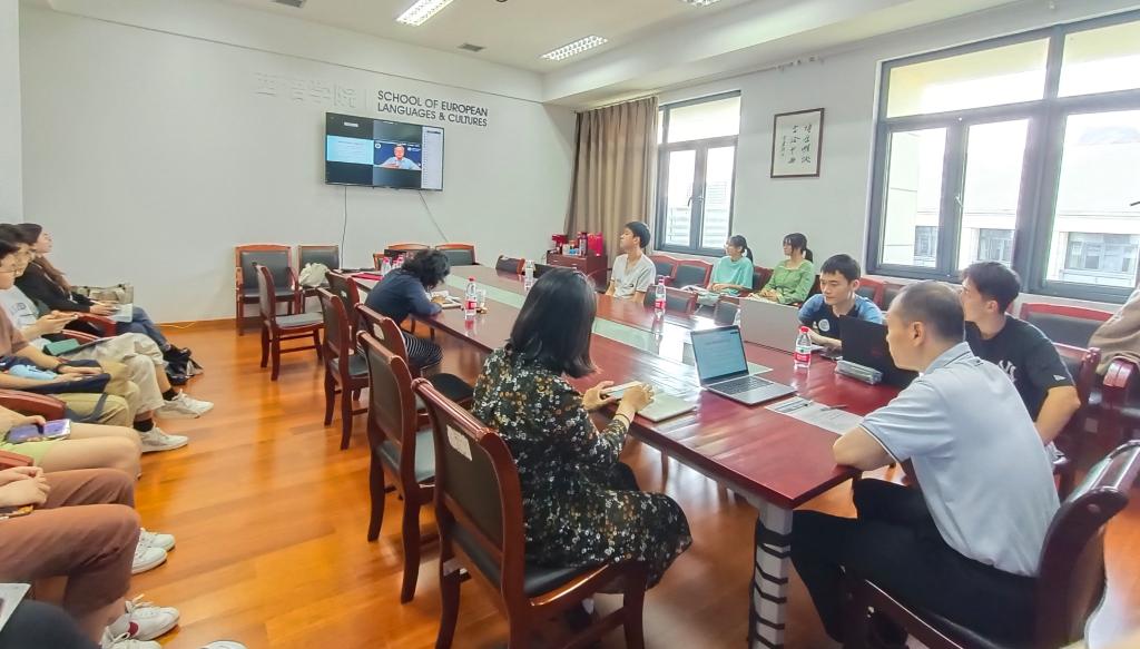(西语学院副院长张禄彭在会议室现场主持讲座)