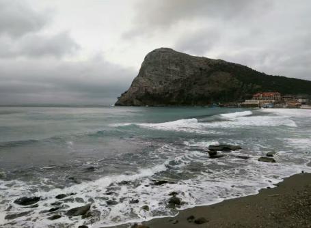 第二天的早晨,下午要赶往雅尔塔,于是早上早早地就出发乘坐当地公车(等车的时候,我们走错方向时,有当地人主动指路,十分淳朴善良)去往海边的景点“Новый Свет”(新世界湾),只可惜乌云密布,没有找到戈利岑步道不说,也没能如愿看到阳光下透蓝的近海,只余下风大作,浪翻涌,涛声阵阵。不过这样的景观也是很震撼,毕竟各有各的美。