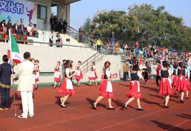 的方阵整齐划一的步伐、高亢嘹亮的口号、颇具特色的服装,一入场就引起了观众的瞩目,大家手里挥舞着各国的小国旗,走过主席台,葡语班同学身着葡萄牙传统服饰为大家表演了葡萄牙民族舞蹈,热情奔放的舞姿点燃了大家的激情,同时也展现了色漫网