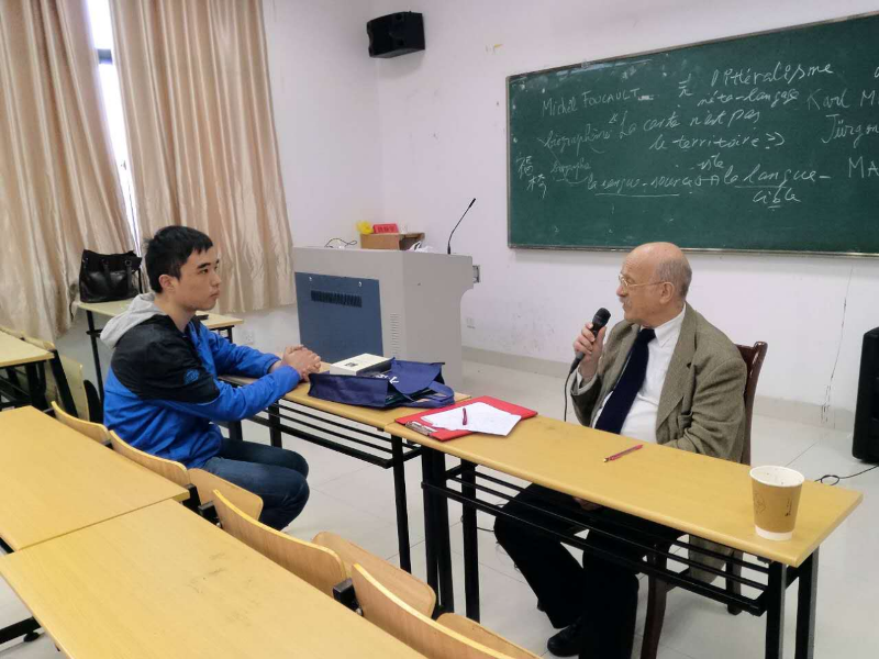 拉德米拉尔先生几十年来一直是法国翻译学界的代表人物,他师从于著名哲学家保尔·利科(Paul Ricœur)先生,曾在巴黎十大的哲学系和语言学系同时授课。近年来他和马松教授在索邦大学合开的“比较文学与翻译”的系列讲座颇受欢迎。拉德米拉尔先生在讲座中用生动的语言阐述他的翻译观,着重讲解了翻译理论与翻译实践的关系,使得大家对翻译学有了更深入的了解。讲座后,拉德米拉尔先生和大家进行了交流,回答了大家关于翻译、哲学等诸多问题。