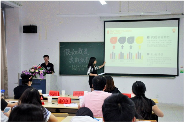 为了激发同学们的创造力,提前让同学们深入了解暑期社会实践活动,规划设计同学们的暑期社会实践项目。6月4日(周四)下午, 东、西方语言文化学院在艺术楼A405教室成功举办“假如我是实践队长” ——第二届大学生暑期社会实践创意设计大赛,共有21支队伍参加了比赛。来自东、西语学院的各专业老师、辅导员参与了此次比赛的评选。比赛过程中,各支队伍分别通过“VCR三分钟‘情景展示’”、“PPT讲解”两个环节向大家展示了选题的实践计划、可行性、选题亮点及创新点,令大家耳目一新。一个个精彩的VCR以及一次次精湛的演讲给在场的所有人带来了一场视觉与听觉的盛宴。最终,“杭州现代民宿业发展的调查与思考”队伍摘得桂冠,“面向G20的浙外小语种志愿者队伍建设”等3支队伍荣获二等奖,“掌上大学——杭城高校公众平台现状与前景探究”等6支队伍荣获三等奖。