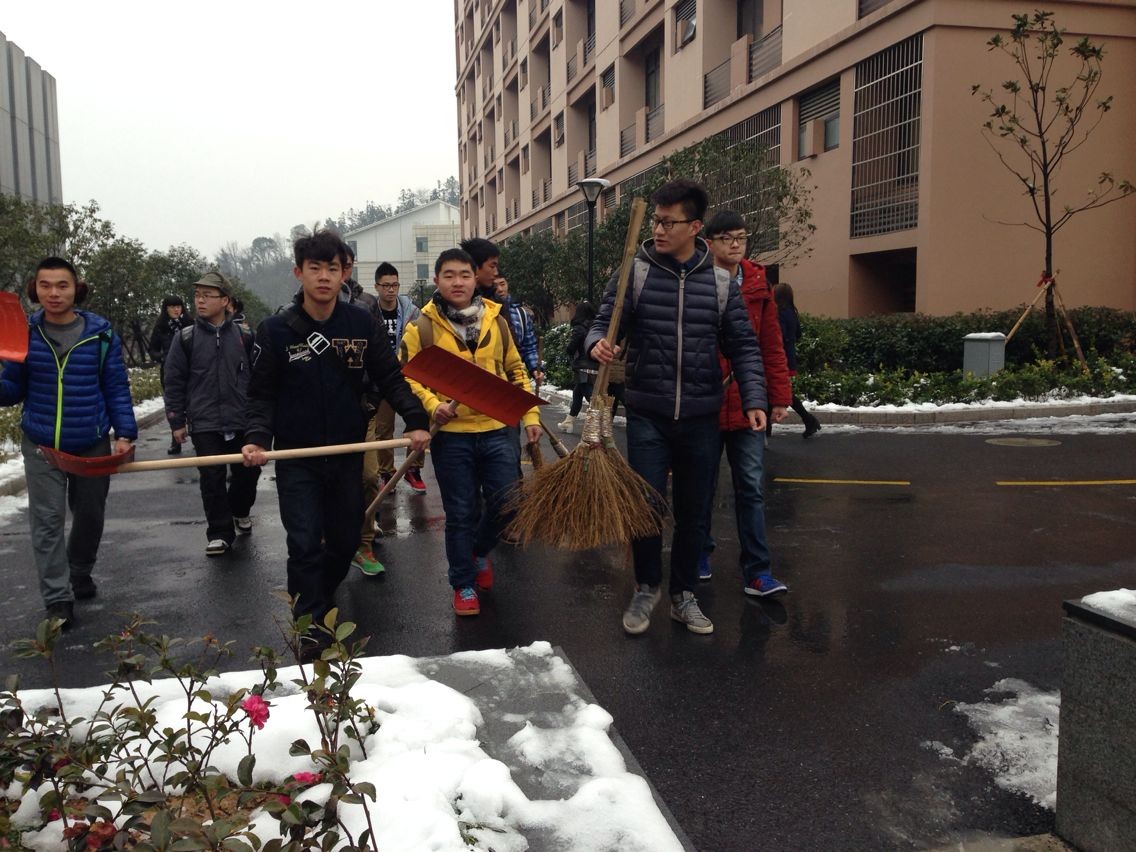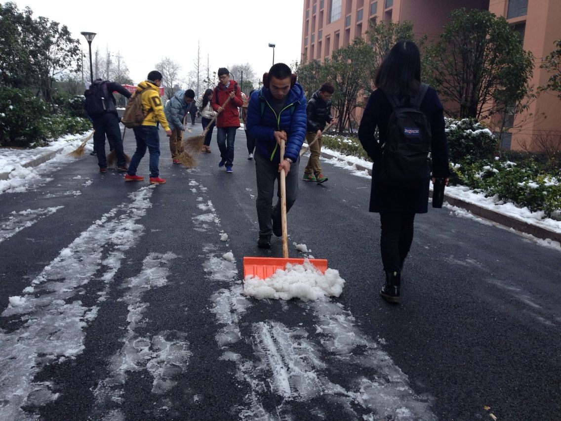 2月19日早,经历过一天一夜大雪的小和山银装素裹。7点整,冒着低温和寒风,由色漫网 团学主要干部、党支部骨干同学组成的扫雪队伍一行十余人在食堂门口集合,对校区主要道路的积雪进行了扫除。参与扫雪活动的同学表现出极高的热情,干得热火朝天。