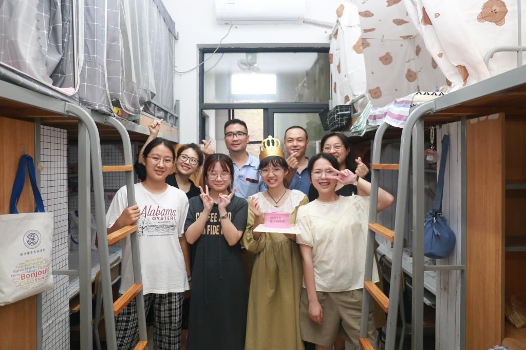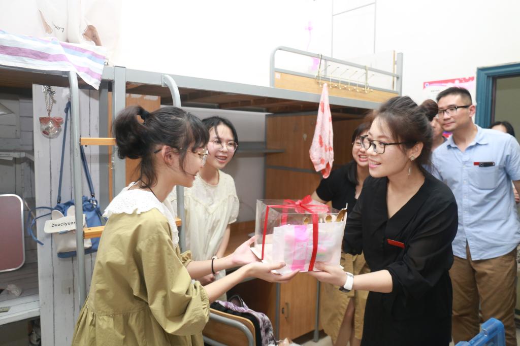 下午,西语学院领导班子、系主任、新生班主任和辅导员分组走访西语学院2021级新生寝室,为新生们送去温暖的关怀与慰问。在寝室走访期间,老师们亲切地询问了新生第一天入学的经历与感受,从生活、学习两个方面介绍了西语学院的具体情况,结合小语种专业的特点、专业优势及未来发展前景提出相应的建议,为新生未来的发展指明了道路。学院党总支书记毕莹专门为报到当天即将迎来生日的新生送上了十八周岁的生日蛋糕,并为其即将开启的大学生活致以了美好祝愿。