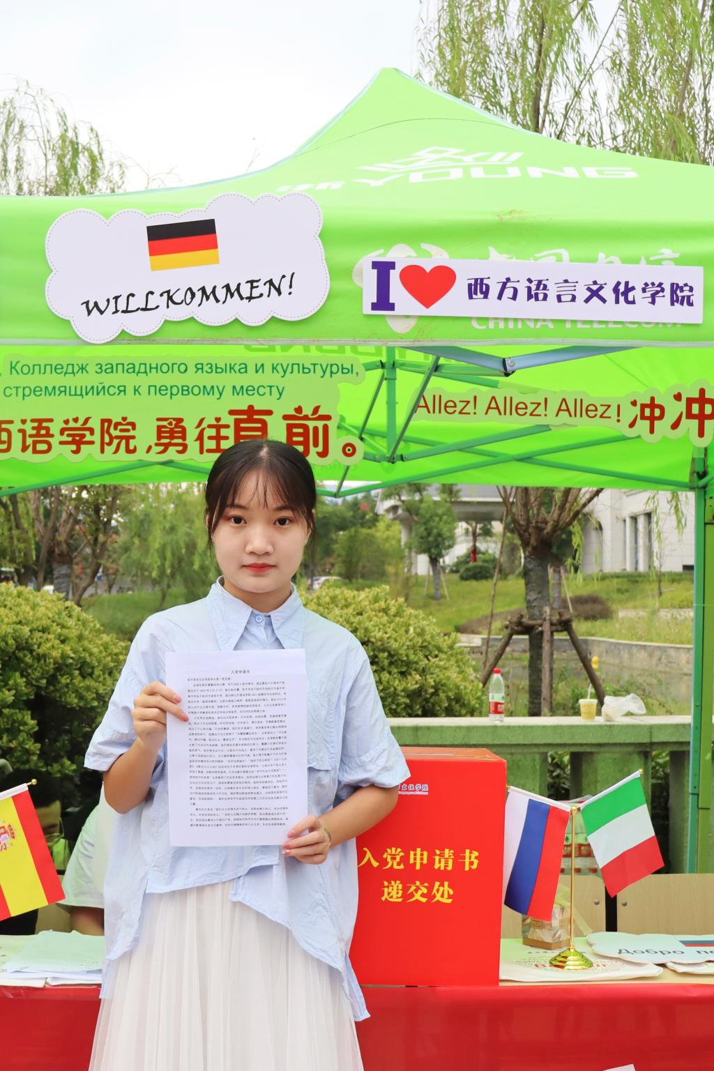 在学院接待处有一个显眼的小红箱——新生入党申请书投递箱。49位新生在开学报到第一天就庄严地将自己的入党申请书投入箱中。小小的申请书,满载着为人民服务,为国家贡献,为未来奋斗的远大理想和波澜壮志,浙外不仅是他们学业生活的一个全新起点,更是他们向党组织迈进的重要一步。