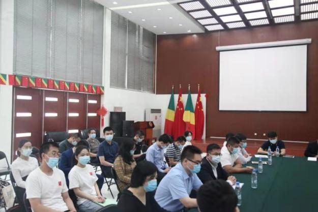 法语专业毕业生封梦骄作为第 27 批援刚果(布)医疗队青年代表参加驻刚果(布)大使馆召开的五四青年节座谈会并作发言。全体使馆工作人员、在刚中资企业等均到场参加了会议。