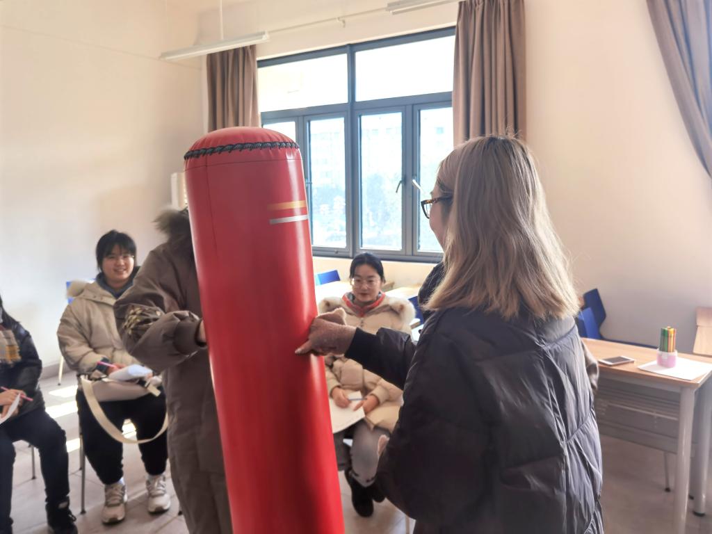 辅导员陈相伟老师先带领大家通过正念呼吸舒缓身心,试着感受呼吸的空气和冬日阳光的温暖,将自己从学习的忙碌和紧张中释放出来。大家闭目在脑海中静心回想即将过去的2020年,以关键词形式在纸上写下了对这一年的印象,与身边同学相互分享这一年的感受。然后,大家又在纸上写下这一年的痛苦和烦恼,将负面的情绪借文字具象化,在坦然分享后用力敲打发泄柱,与今年所有的不悦就此作别。最后,大家写下了对2021年的美好愿望,放于愿望盒中封存,将用自己的行动去努力实现对美好生活的向往。