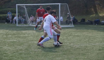 9:00整先由俄语系和西班牙语系的男生开始8v8对抗赛,球员们用让人眼花缭乱的脚下技术和熟练的团队配合,互有攻防,西班牙语系以3:1取得胜利,双方为大家献上了一场精彩的比赛。