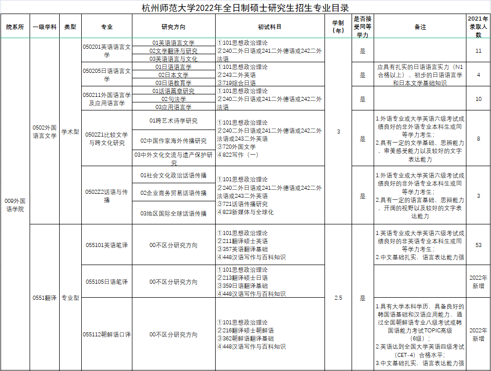 杭州师范大学是浙江省重点建设高校,是一所以师范教育为传统、文理并重、人文社会科学与自然科学协调发展的综合性大学。学校现有仓前、玉皇山、下沙三个校区,分别位于杭州未来科技城、西湖之滨和钱塘江畔,占地面积179.3万平方米。学校下设23个学院(部)、1个直属附属医院(杭州市第二人民医院),有全日制在校生25115人(不含独立学院),其中全日制硕士生4130人、博士生64人,学历国际学生336人。现有教职工2492人,其中专任教师1791人(高级职称占比近62%),全职院士、共享院士、国家杰出青年科学基金获得者等国家和省级高层次人才80余人,全国优秀教师4人,学校入选首批省海外高层次人才创新创业基地。外国语学院下设英语系、翻译系、日语系、朝鲜语系和大学外语部,现有英语、翻译、日语、朝鲜语4个本科专业,拥有“外国语言文学”一级学科硕士学位授予权,下设英语语言文学、日语语言文学、外国语言学及应用语言学、比较文学与跨文化研究、话语与传播5个二级学科硕士点,同时还拥有翻译硕士(英语笔译、日语笔译、朝鲜语口译)专业学位硕士点。