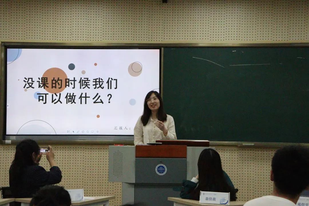 从我校法语系毕业的翁佳薇老师,结合她大学期间参加的活动与收获,以及工作以后配合、组织的学校学院丰富多彩的校园文化活动,向大家介绍了课外活动的丰富选择,鼓励同学们积极走出寝室,多参加活动,多在活动中锻炼自己、提升自己。她还指出了课外时间规划的误区,提出了正确做规划的建议。