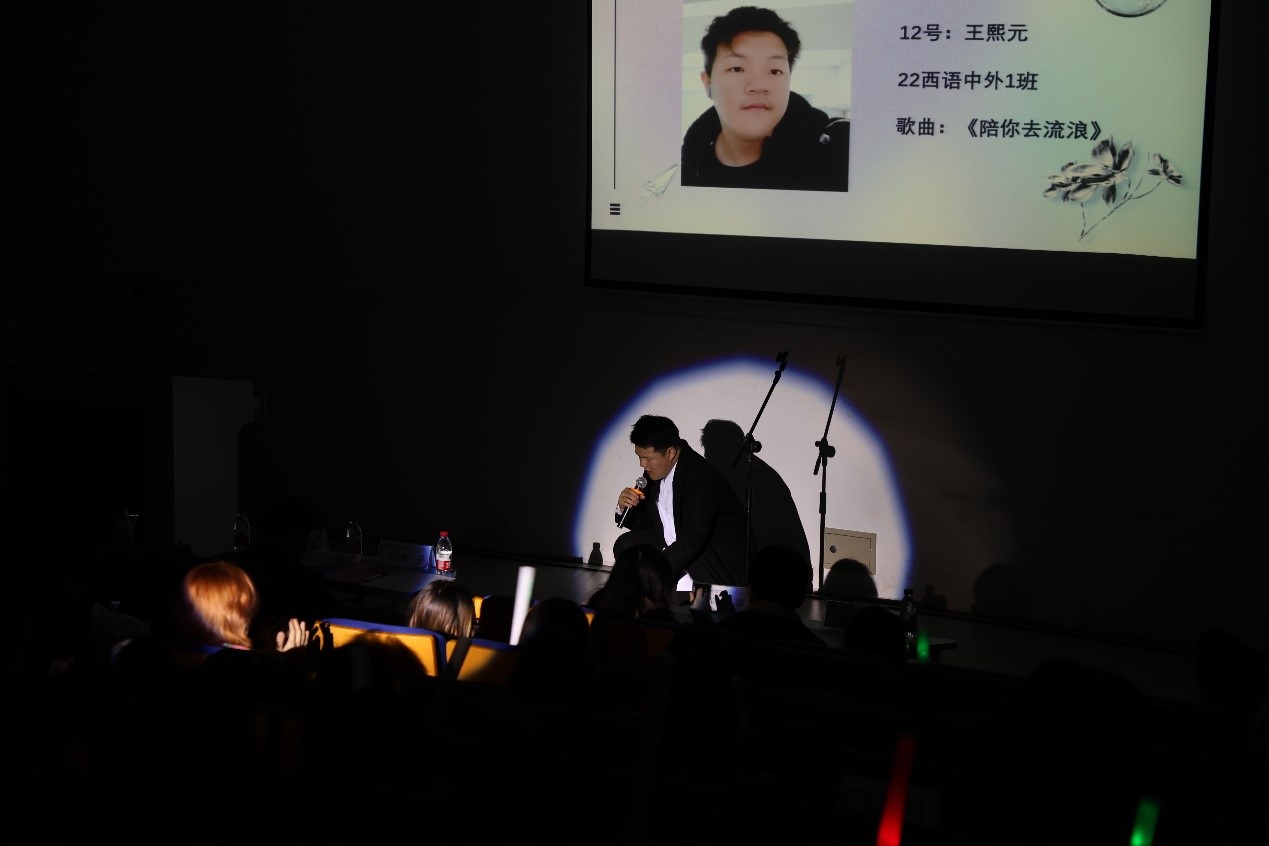 舞台下座无虚席,观众们热情地为选手呐喊喝彩。同学们有的自发准备花束,上台送花;有的以班级为单位,组团支持选手;还有的在后排站立着看完了全程表演。同学们挥舞着手中的应援棒,点点彩色光芒和台上同学们的歌声一起,汇聚成大家心中一个难忘的夜晚。