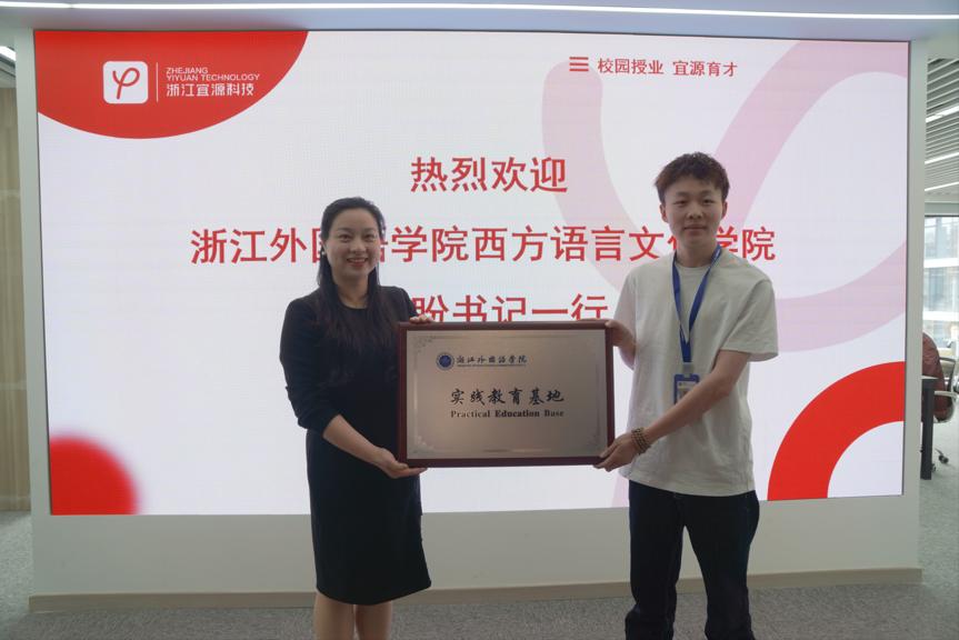 二、西语学院走访校友企业浙江宜源科技有限公司并授牌