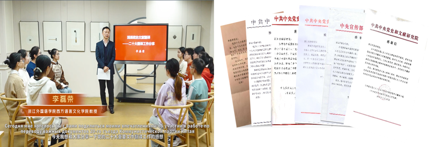 李磊荣教授长期从事国家重要政策文献翻译,作为学校多语种宣讲团骨干成员