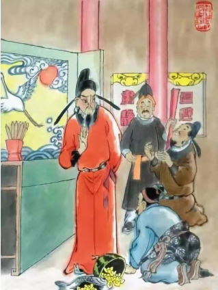 第二天,县衙门外挤满了看热闹的百姓。白居易升堂后问道:“你们哪个先讲?”赵乡绅抢着说:“大人,我的理(鲤)长,我先讲。”李财主也不甘示弱说:“我的理(瓜)大,该我先讲。”白居易沉下脸说:“什么理长理大?成何体统!“赵乡绅以为县大爷忘了自己送的礼,连忙说:“大人息怒,小人是个愚(鱼)民啊!白居易微微一笑说:“本官耳聪目明,用不着你们旁敲侧击,更不喜欢有人暗通关节。来人,把贿赂之物取来示众。”